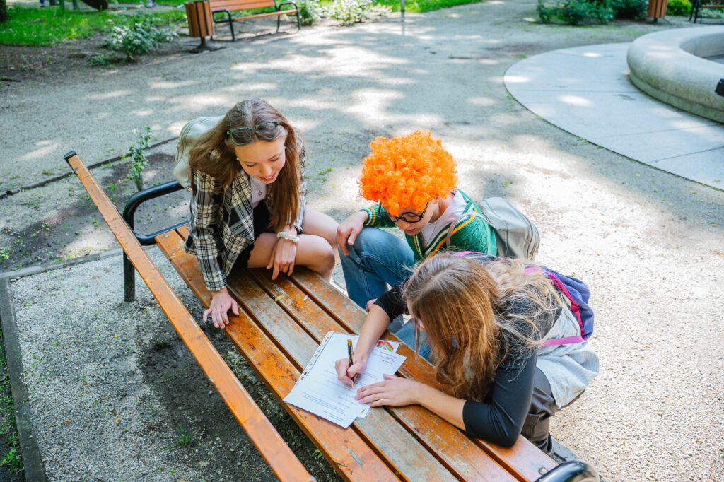 W grze uczestniczyły 3-osobowe zespoły ze szkół podstawowych (klasy IV-VI, klasy VII-VIII) oraz zespoły ze szkół średnich. W sumie w tym roku udział wzięło 23 drużyn! Trasa gry przebiegała w Parku Miejskim. Zadaniem uczestników było dotarcie do wszystkich punktów kontrolnych, na których uczestnicy wykonywali zadania weryfikujące ich wiedzę z wybranych lektur. W tym roku uczestnicy w kategorii wiekowej kl. IV-VI czytali „Cyrk martwych makabresek” Anety Jadowskiej, kl. VII-VII „Mama w occie. Zabójcze pierogi” naszego tegorocznego gościa – pana Marcina Przewoźniaka, klasy ze szkół ponadpodstawowych „Nie ma tego Złego” Marcina Mortki.