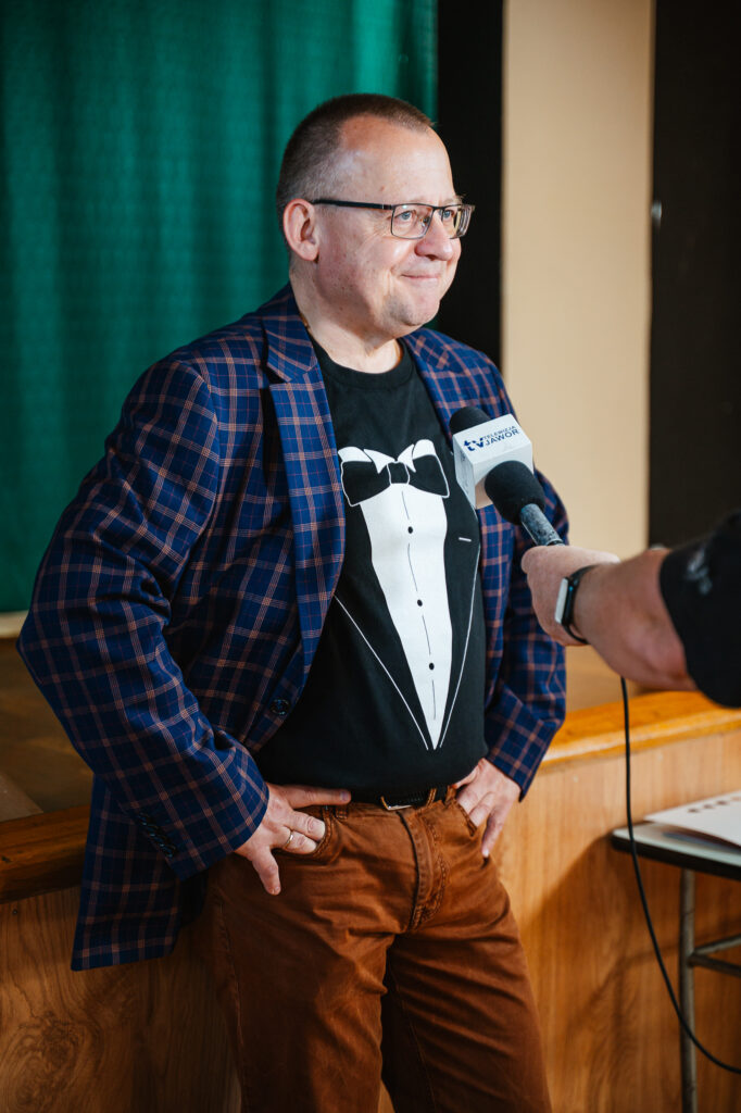 Przed rozpoczęciem gry odbyło się spotkanie z panem Marcinem Przewoźniakiem, od lat niezwykle popularnym autorem książek dla dzieci i młodzieży. W swoich publikacjach sięga po bardzo różnorodną tematykę, związaną z wieloma dziedzinami życia. Porusza tematy trudne, starając się przekazać je dzieciom w zabawny i zrozumiały dla nich sposób. Debiutował w 1992 roku na łamach czasopisma „Pętliczek”. Jego utwory jednocześnie „bawią, by uczyć i uczą, by bawić”. Często trafiają na listy bestsellerów. Nasz gość dedykuje swoje książki i dzieciom i rodzicom – aby nikt się nie zanudził przy wspólnej lekturze. Autor opowiedział uczestnikom gry o swojej twórczości, o tym co go inspiruje i zaciekawia, jak wygląda jego praca pisarska, jakie tematy są mu bliskie, o wykreowanych przez niego historiach i bohaterach. Pan Marcin chętnie podpisywał swoje książki i rozmawiał z uczestnikami gry.