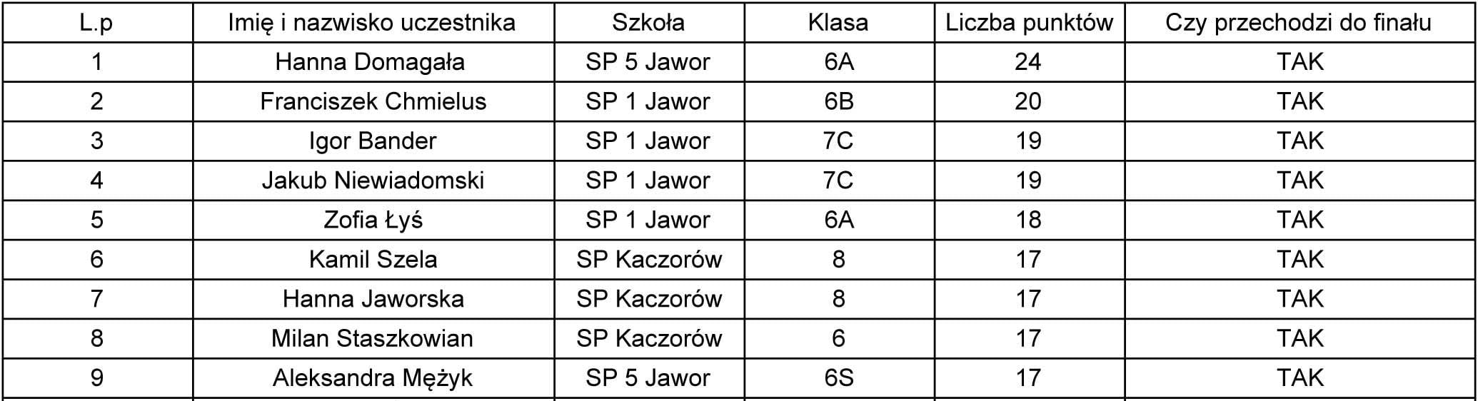 I miejsce: Zofia Łyś Szkoła Podstawowa nr 1 w Jaworze