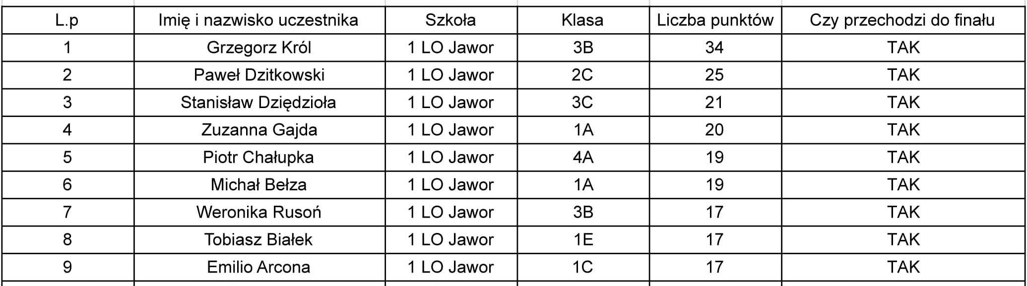 Kategoria szkoły ponadpodstawowe – 1 Liceum Ogólnokształcącego w Jaworze: